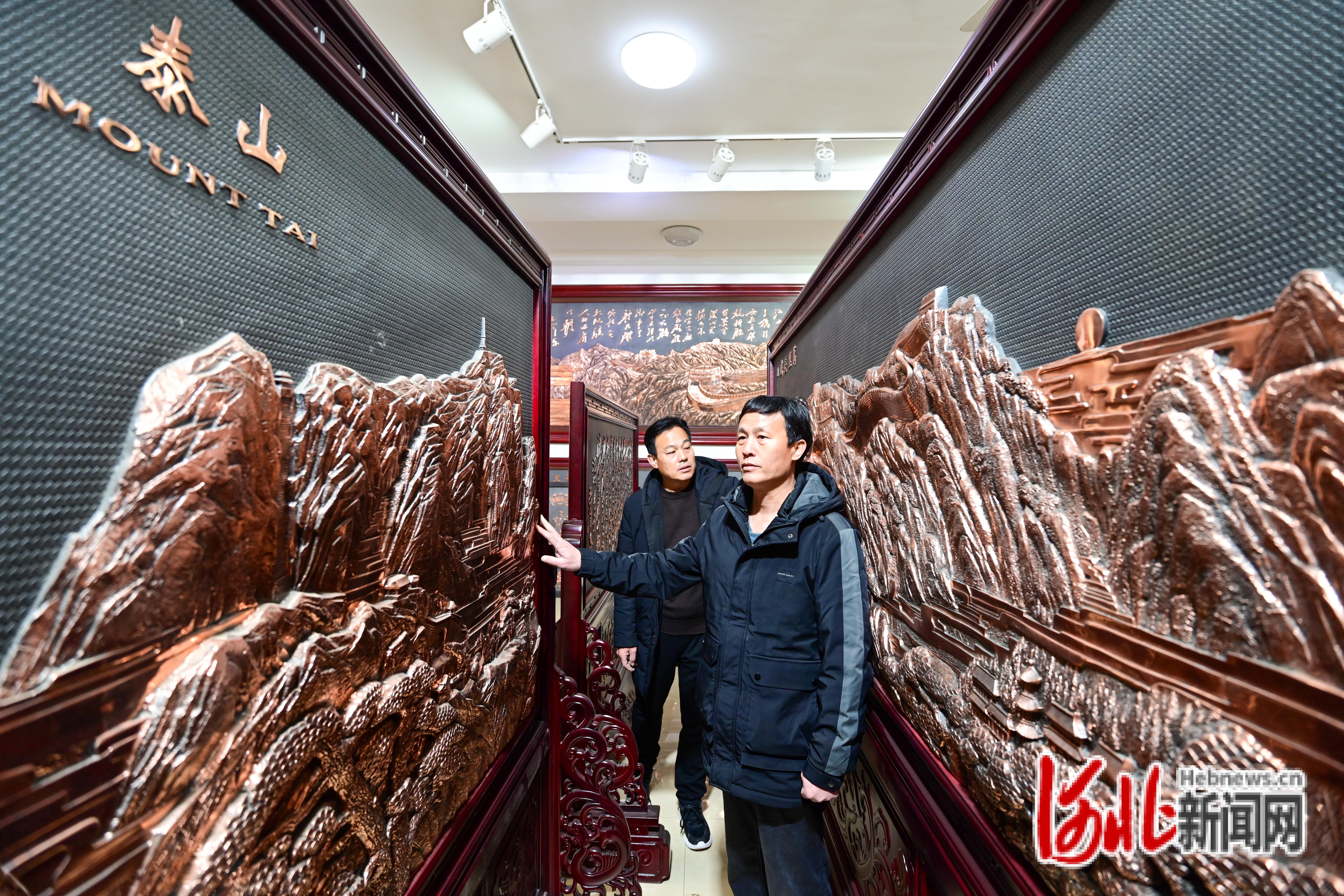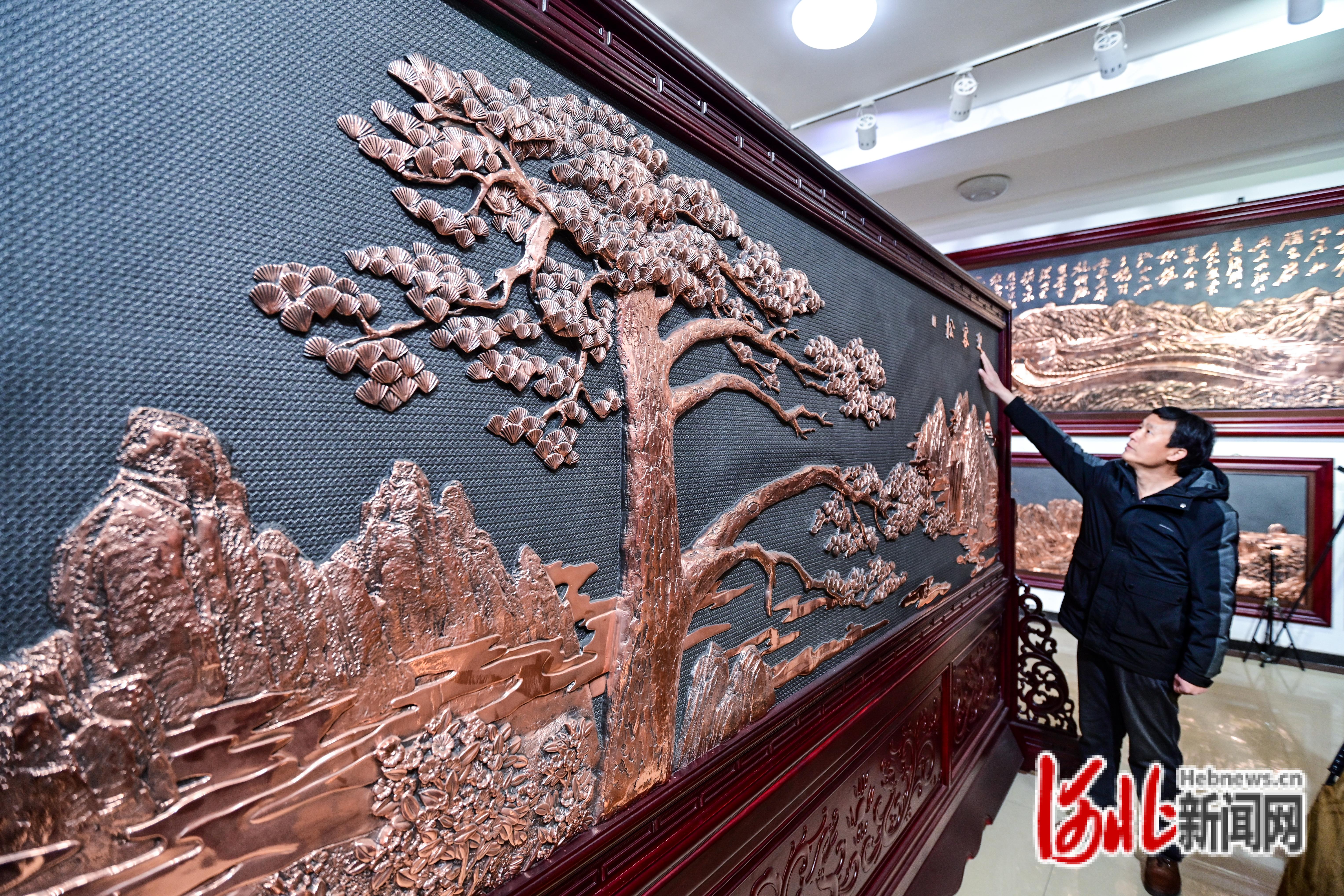 将时针拨回1996年,时任晋州市铜材厂厂长的张增入,试图为传统铜艺寻找一条新路。“那时候不断制图、塑模,失败是家常便饭。经过四年多摸索和上千次试验,产品逐渐达到理想效果。”张增入说,正是这份执着,让企业突破了传统铜艺在细微花纹处理上的局限,既能展现大气磅礴的场景,也能刻画精巧细腻的细节,开发研制出了紫铜浮雕工艺品。