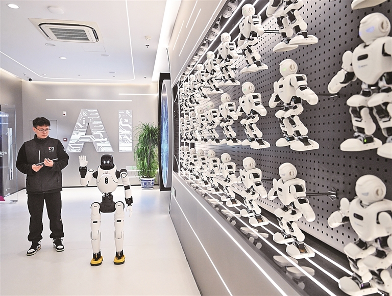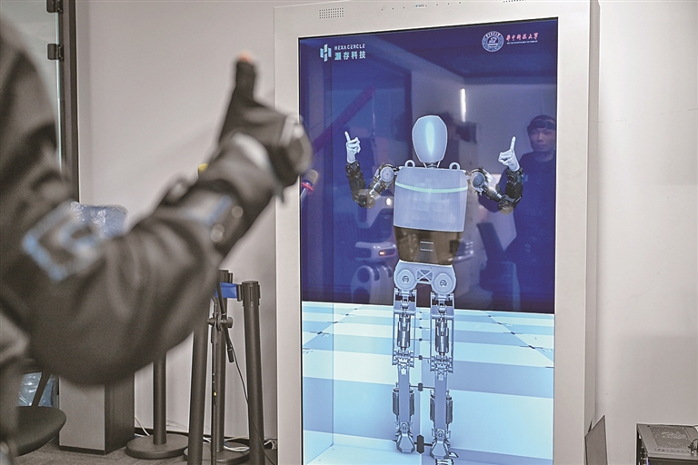 江苏南京,一款华夏机器人在打招呼。新华社发