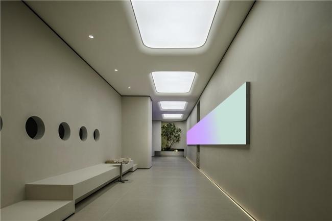 步入展厅的“启”幕,自然时空长廊与序厅率先营造出充满仪式感的氛围。光影流转间,时间与空间的界限变得模糊,隐喻着“智能与自然共生”的品牌主张。在这里,科技不再是冰冷的工具,而是融入自然肌理的媒介,为后续的睡眠哲思埋下伏笔。